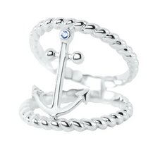 Ladies Anchor Double Rope Ring from Nau-T-Girl in Silver with Imitation Blue Stone